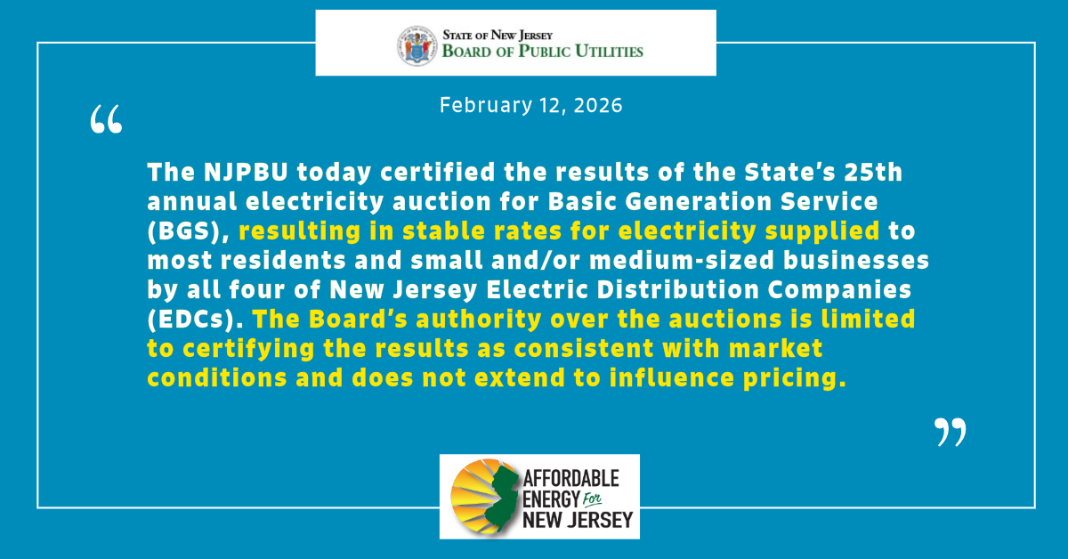 Last week, the BPU announced that they certified the 2026 electricity auction results. While what they put out was a standard press release, this paragraph in their statement caught our attention: